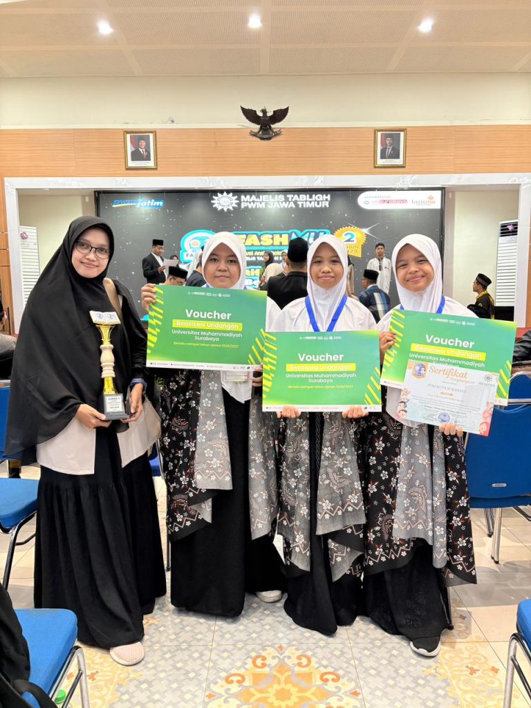 Surabaya — Tak ada kemenangan tanpa perjuangan. Ungkapan itu tampaknya benar-benar dialami oleh Tim LSQ perwakilan Pimpinan Daerah Muhammadiyah (PDM) Surabaya yang terdiri dari C (kelas 9 As Shobur), Denada Liafhirotin Najwa (kelas 9 As Shobur), dan Marwah Athifatul Qonita (kelas 8 Al Fathonah). Ketiganya sukses meraih Juara 1 Musabaqah Syarhil Qur’an (MSQ) FASHMU 2 Tingkat Jawa Timur, yang digelar di Universitas Muhammadiyah Surabaya, Gedung At-Tauhid, pada Sabtu, 4 Oktober 2025.