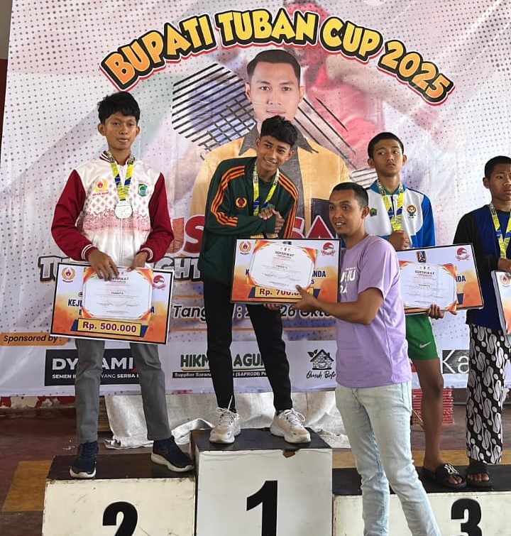 Surabaya – Kabar membanggakan datang dari dunia olahraga bela diri! Afdal, murid kelas 9 dari SMP Muhammadiyah 7 Surabaya yang dijuluki “Sekolahnya Para Pemimpin” berhasil meraih gelar Juara 1 dalam ajang bergengsi Bupati Tuban Cup 2025 yang berlangsung pada 24–26 Oktober 2025.