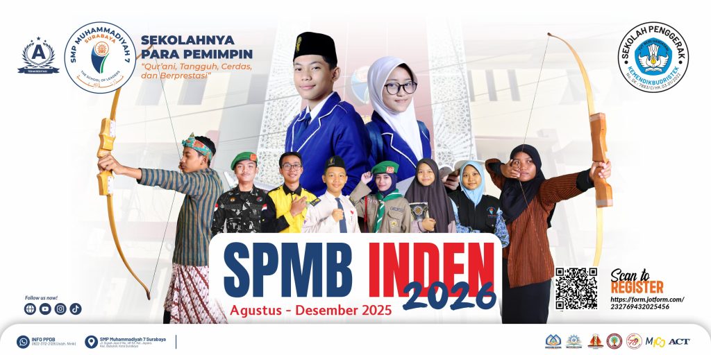 Dengan tagline “Bismillah 7 Rombel”, SMP Muhammadiyah 7 Surabaya menegaskan komitmennya: mencetak generasi pemimpin yang tidak hanya cerdas secara akademik, tetapi juga berakhlak mulia serta siap menatap masa depan dengan percaya diri. (*)