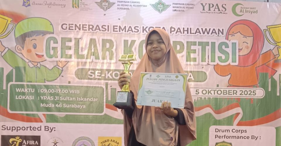 Arnieza Fathia Zahra Suharto, atau yang lebih akrab disapa Eza, kembali mengukir prestasi gemilang di bidang tahfidz. Dalam acara Gelar Kompetisi yang diselenggarakan pada hari Ahad, 5 Oktober 2025, di YPAS, Jl. Sultan Iskandar Muda 46 Surabaya, Eza berhasil meraih Juara 1 dalam lomba tahfidz untuk kategori SMP. Keberhasilannya ini tentu sangat membanggakan, mengingat lomba ini diikuti oleh peserta-peserta dari berbagai sekolah di Surabaya.