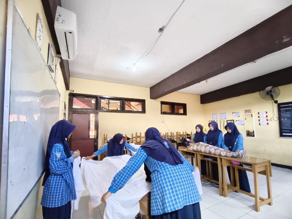 Bagi SMPM 7, kompetensi merawat jenazah adalah “ijazah kehidupan”. Para siswa dididik untuk menguasai setiap jengkal prosesi—mulai dari teknik memandikan yang menjaga kehormatan jenazah, hingga seni melipat kain kafan yang rapi dan presisi sesuai standar Himpunan Putusan Tarjih (HPT) Muhammadiyah.