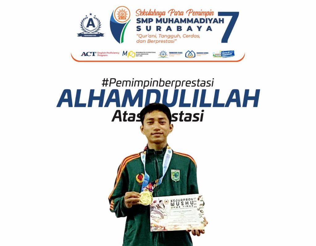 Surabaya – Prestasi membanggakan kembali ditorehkan oleh salah satu siswa SMP Muhammadiyah 7 Surabaya. Afdal, siswa kelas IX As-Sholih, sukses meraih juara 1 pada ajang bergengsi Kejuaraan Provinsi (Kejurprov) Wushu Jawa Timur 2025 yang digelar di GOR Puslatda Kota Surabaya pada 26–28 September 2025.